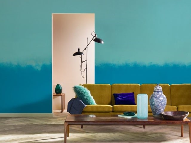 Dreaming of an escape? Transform a room into a serene paradise with tropical-inspired hues that are unmistakably wanderlust-inducing. Recreate the relaxed holiday feeling with a two-toned wall effect that transitions from a vibrant blue to a dreamy green in a soft, textural transition.